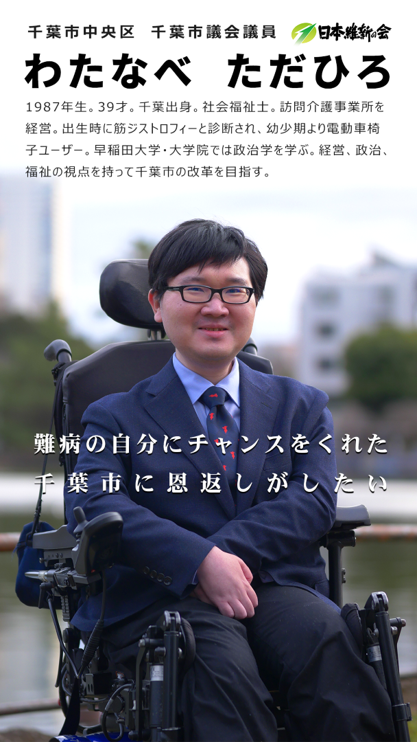 こんにちは、中央区選出の千葉市議会議員、わたなべただひろです。