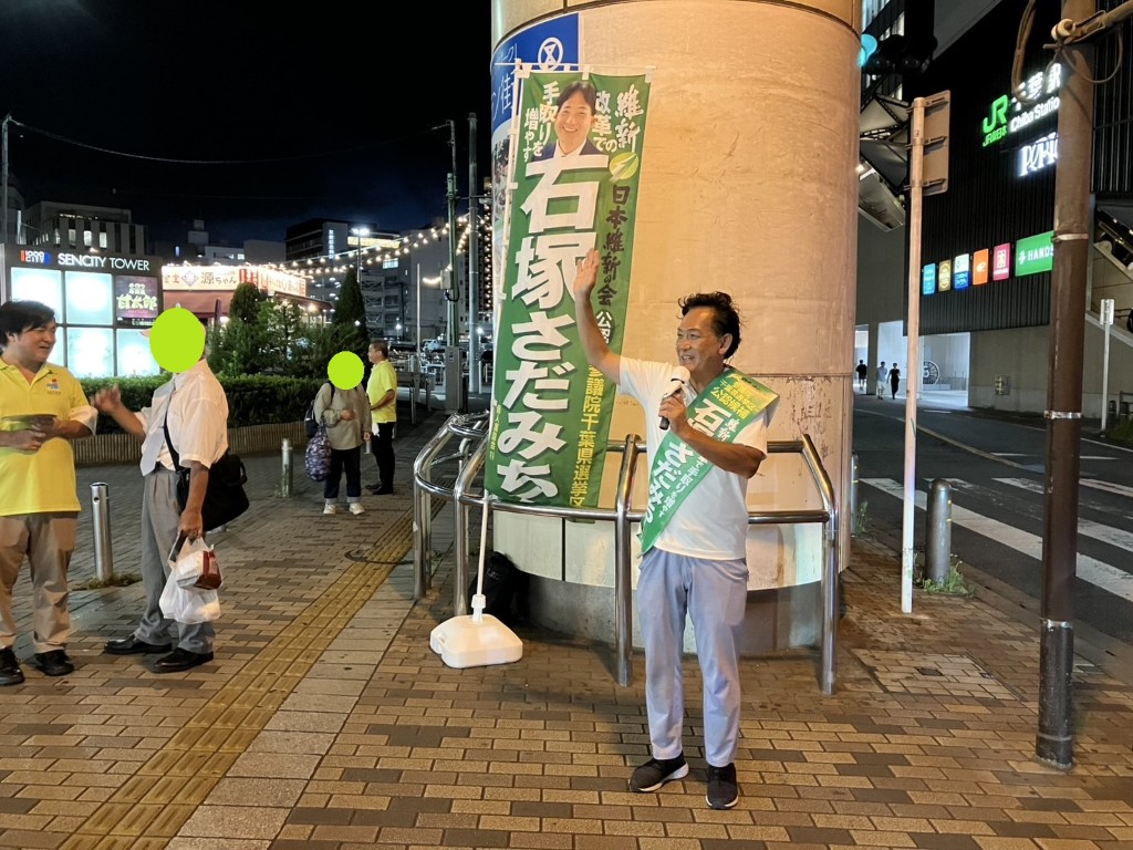 昨日(7/17)、参議院議員選挙 千葉選挙区 日本維新の会 石塚さだみち 候補の千葉駅前での街頭活動応援!