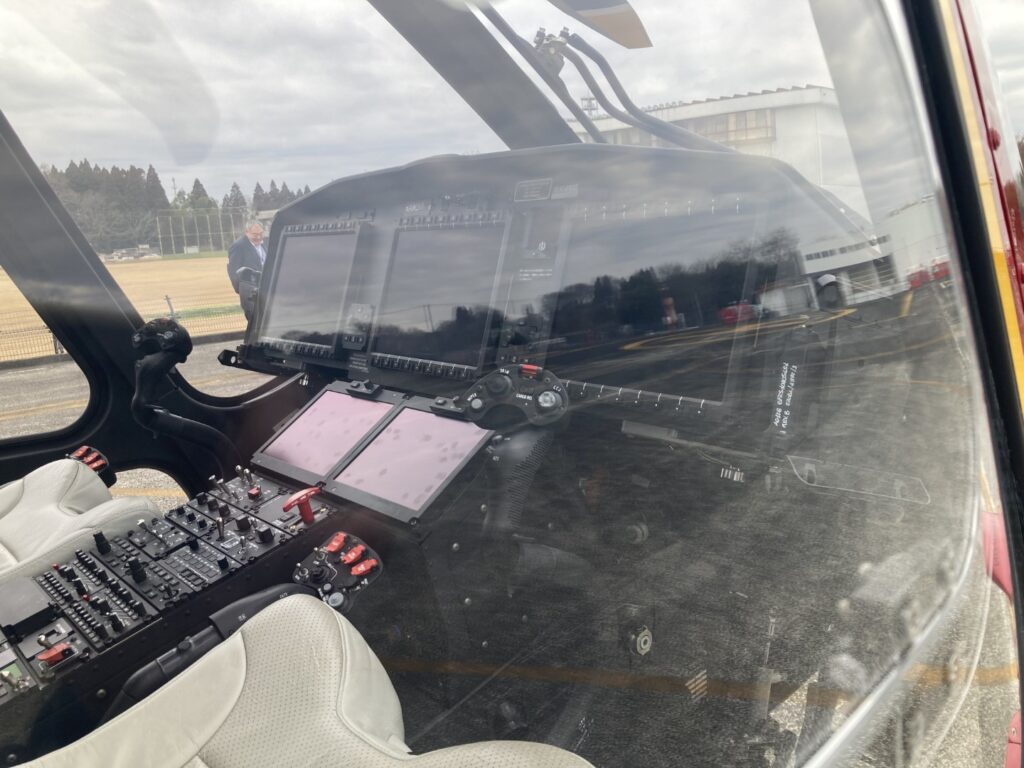 コックピットがデジタル化され、赤外線カメラなどの機能が向上しています。 格納庫の「おおとり1号」(AS365)も見学。
